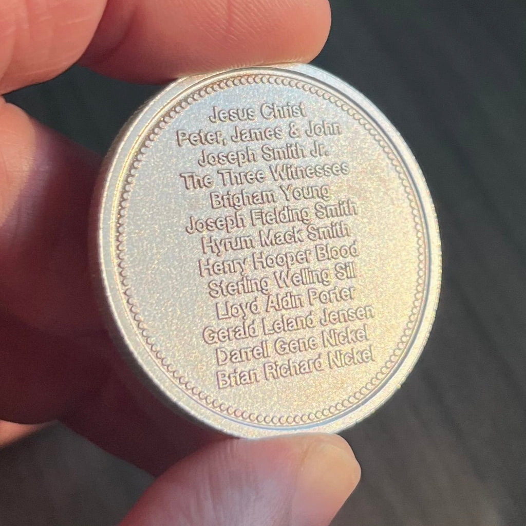 This 1 oz .999 Fine Silver Coin.  Deep raised-relief engraving creates a 3D text effect.  Exquisitely detailed. Truly a one-of-a-kind  gift for LDS men!  (back side is blank)